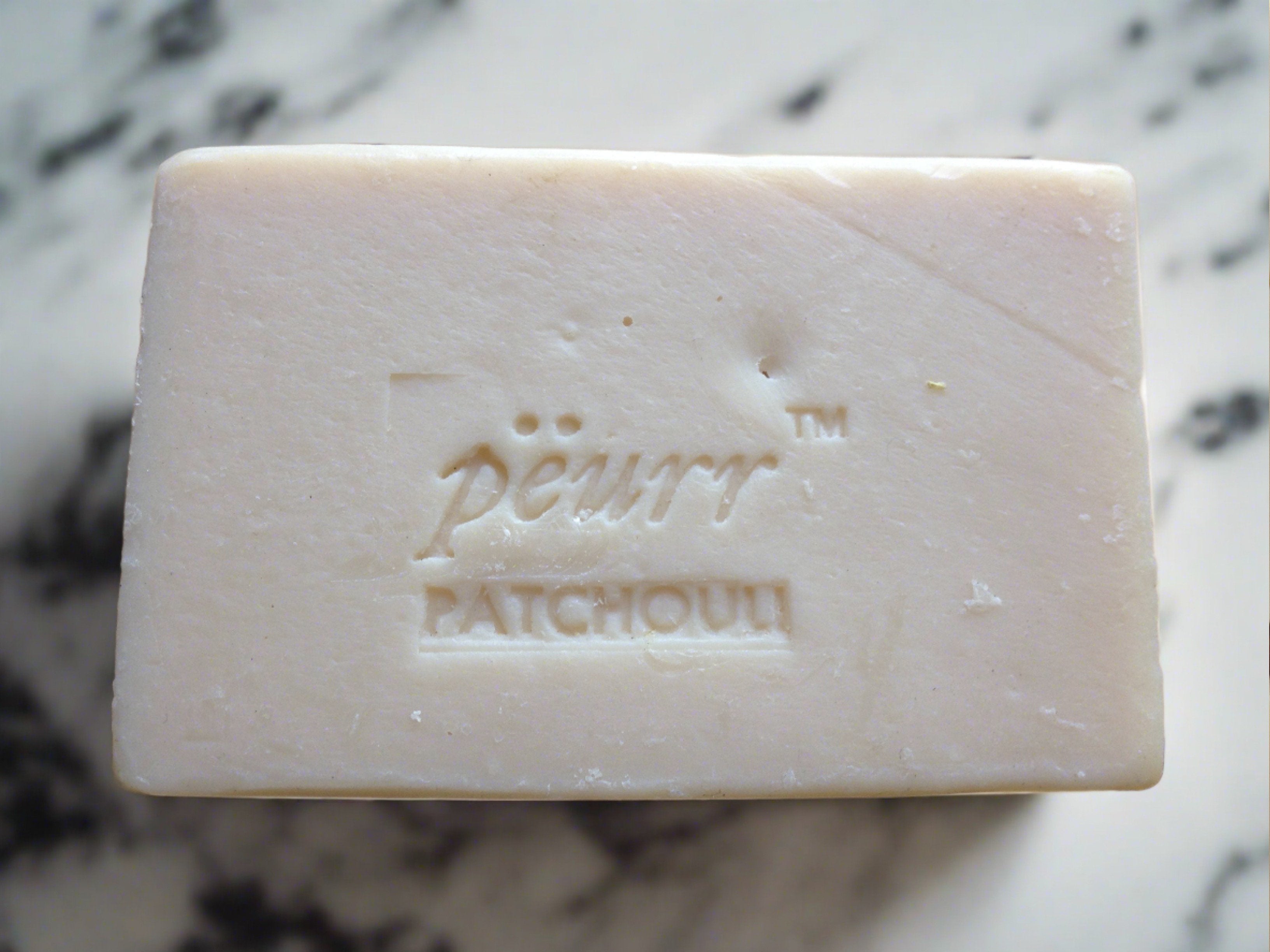 PËURR® soap contains NO colorants, phosphates, sulfates, surfactants, hardeners or artificial chemicals.Ingredients: Saponified Extra Virgin Olive Oil, Raw Goat Milk, Pure Essential Oil of Patchouli