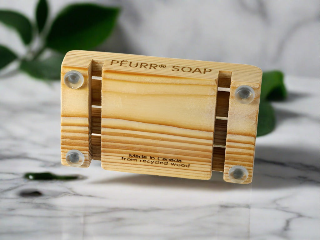 Introducing the PËURR® Soap Dish, crafted from high grade repurposed lumber. Finished with a coconut oil and beeswax mixture for superior durability. This eco-friendly dish is perfect for those looking to reduce their environmental footprint.