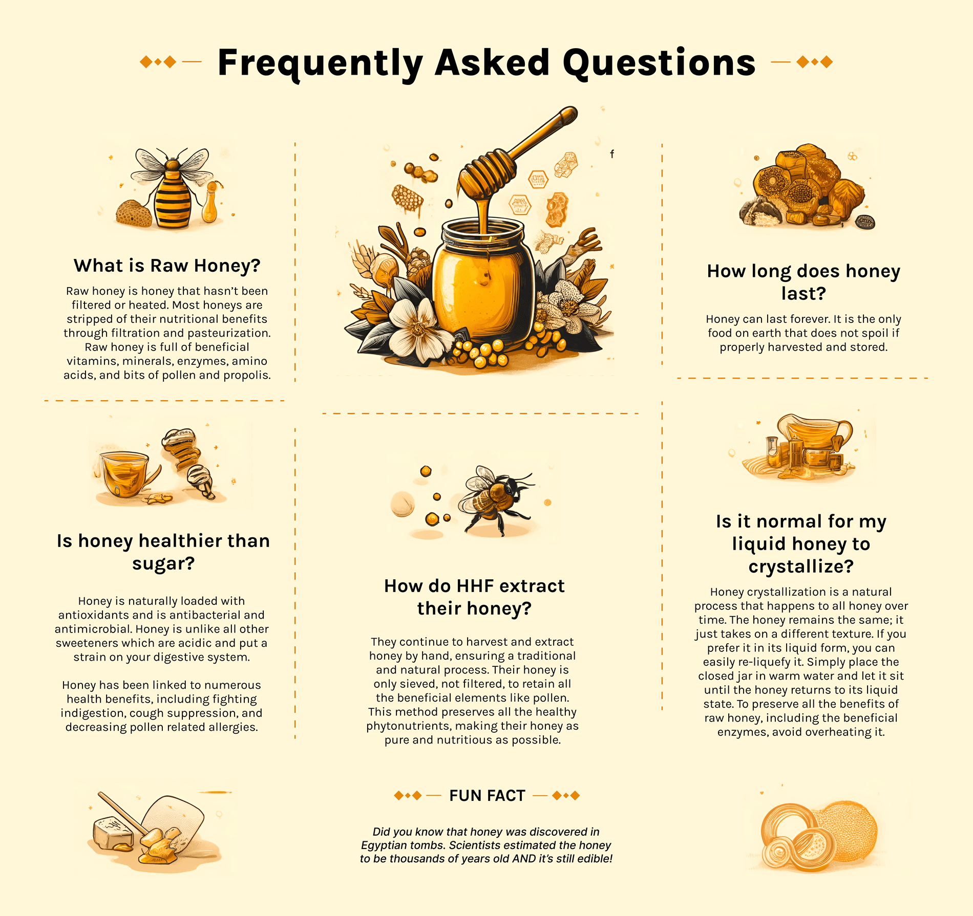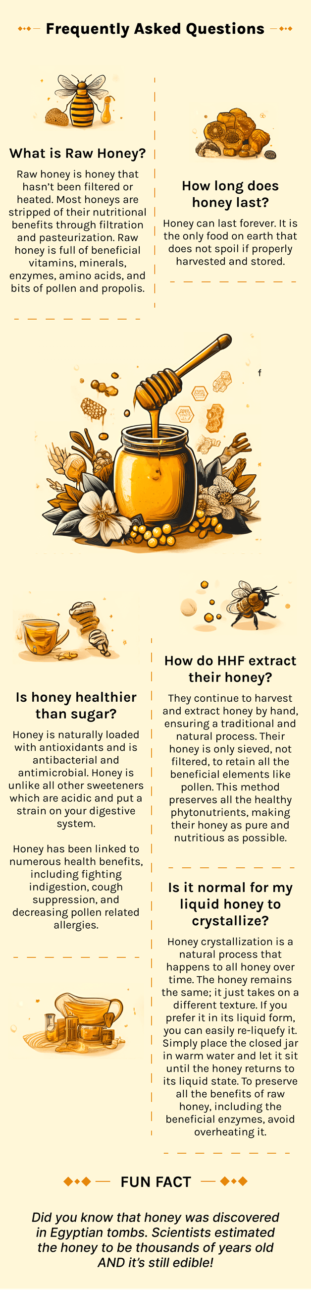 Free Gift with Purchase! Every honey order includes a complimentary wooden honey dipper. Wood dippers are the preferred serving tool and has antibacterial properties that can protect the honey even after multiple dips.